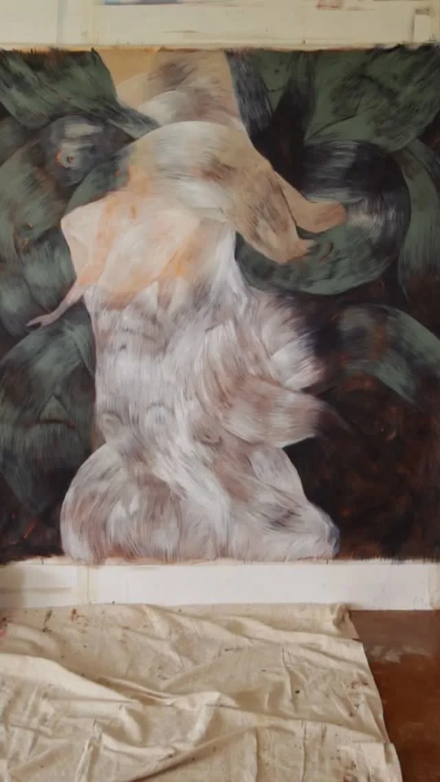 Haeata’s work often features gestural brush strokes, textural overlaps and figurative forms that merge between representational and abstract.