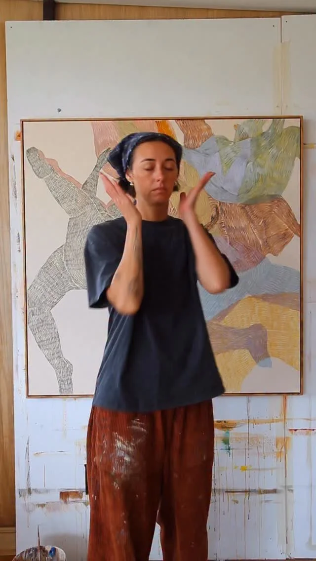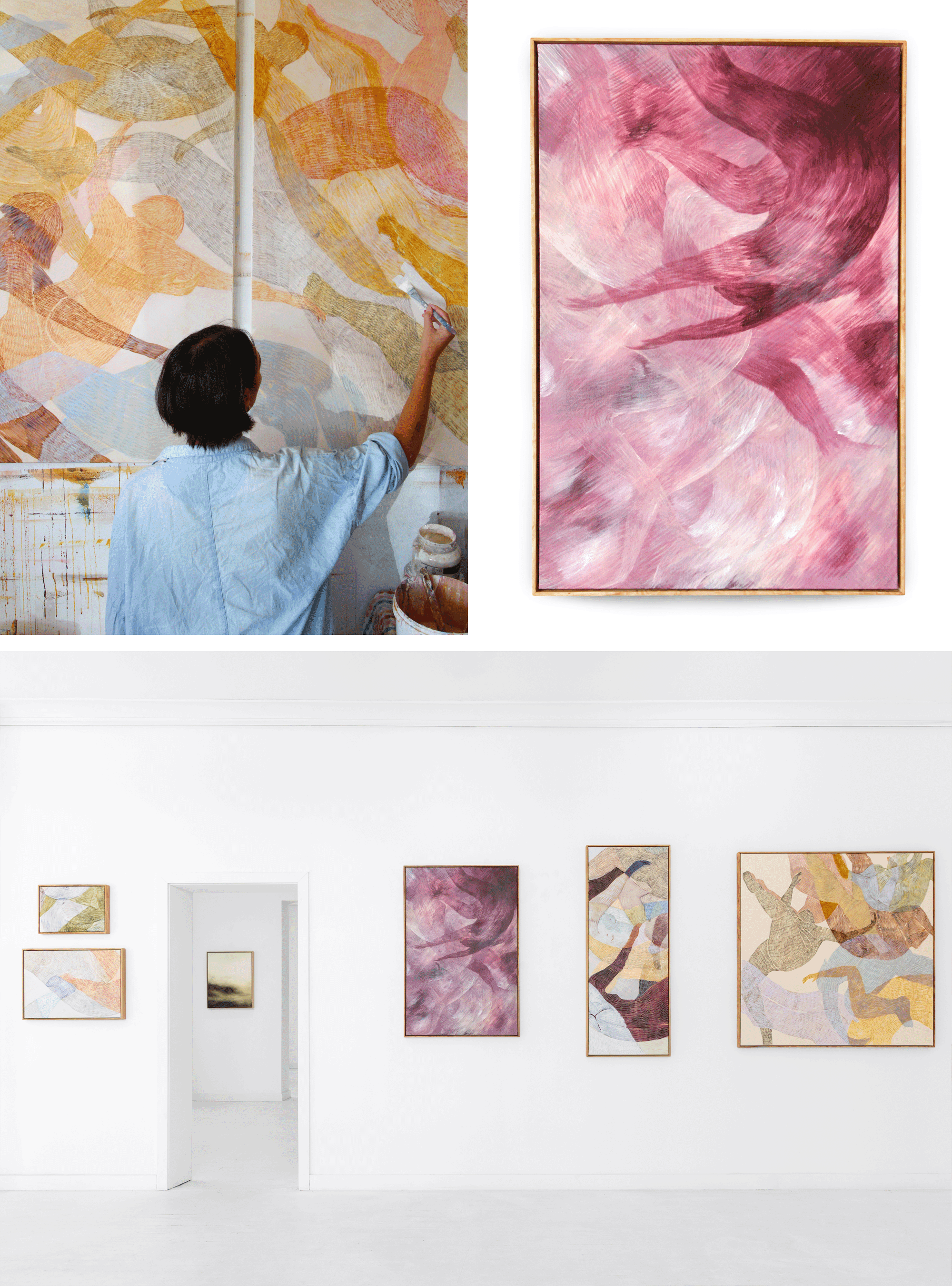 Heavily influenced by the joy and challenge of motherhood, her work across painting, digital media, ceramics and public art is often imbued with a sense of surrender and freedom.