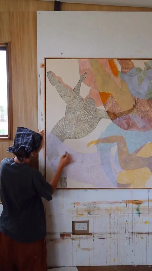 Sarana Haeata is a Maori-Australian artist who resides in Margaret River, West Australia. From her studio Sarana Haeata explores the beauty and nuances held in shared stories, collective and individual identity, with a particular focus on the female experience.